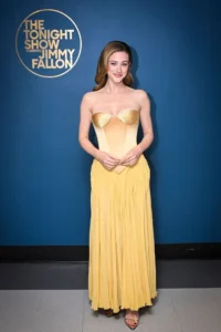 Lili Reinhart brought a warm, glowing presence to The Tonight Show Starring Jimmy Fallon on November 25, 2025. The appearance arrived during a season full of awards chatter, comedy spotlights, and red carpet buzz, especially with the ongoing spotlight on Nikki Glaser Golden Globes since she became the first female host of the Golden Globes. The energy around late night guests felt extra lively, and Reinhart stepped right into that spotlight with a look that captured polish and elegance in one smooth sweep.